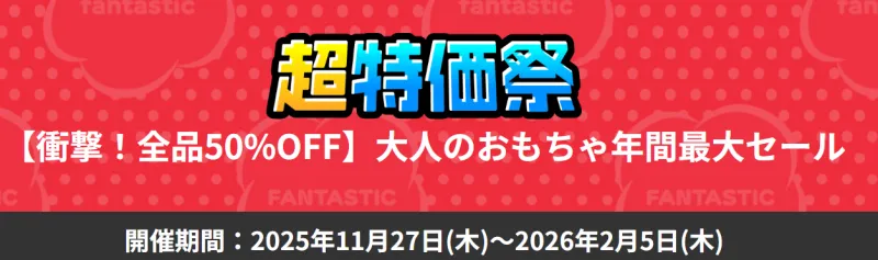 FANZA通販の大人のおもちゃが全品50%OFF!