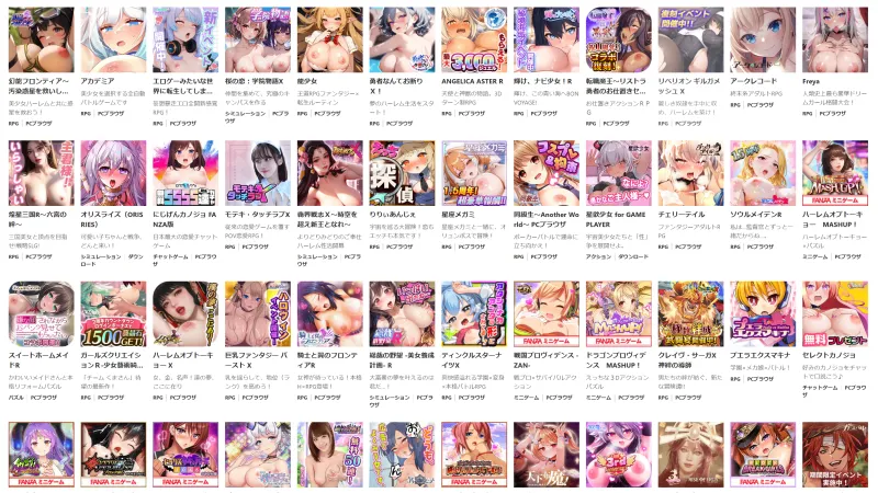 FANZA GAMESのアダルトソーシャルゲームは、タイトル数も膨大で、アダルトジャンルでは最大手。
