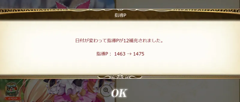 厳密には放置系ゲームではありませんが、スタミナ制ではなく、毎日「指導P」という行動ポイントが一定数付与されるタイプ。