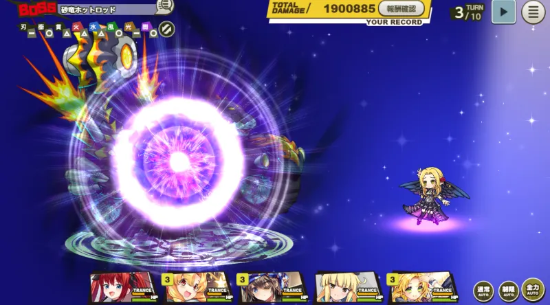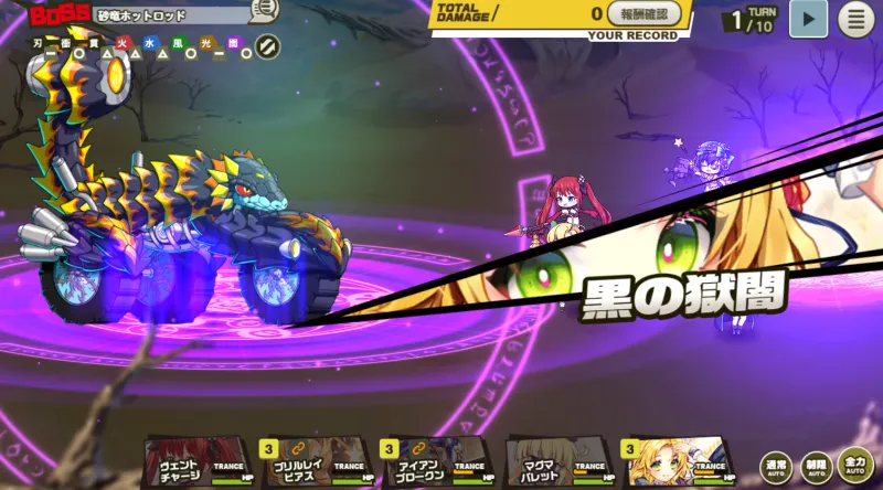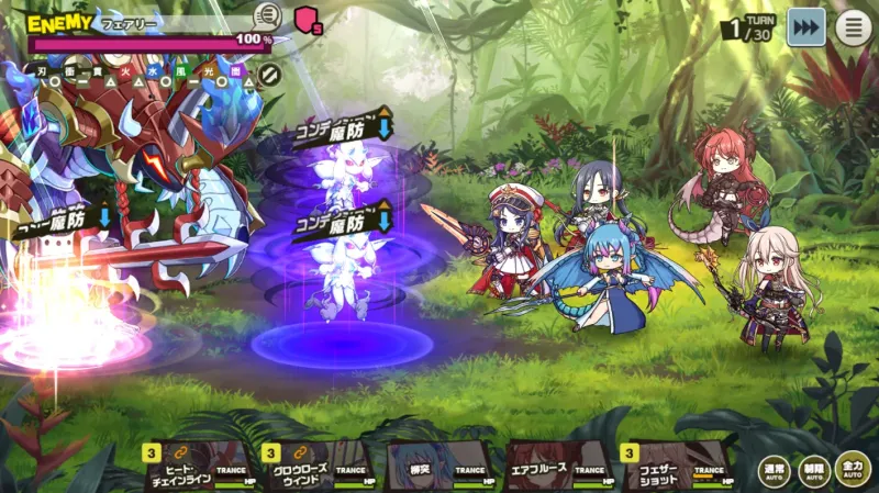 冒険はパーティーに5人までトレインナイトの女の子を編成して戦います。
