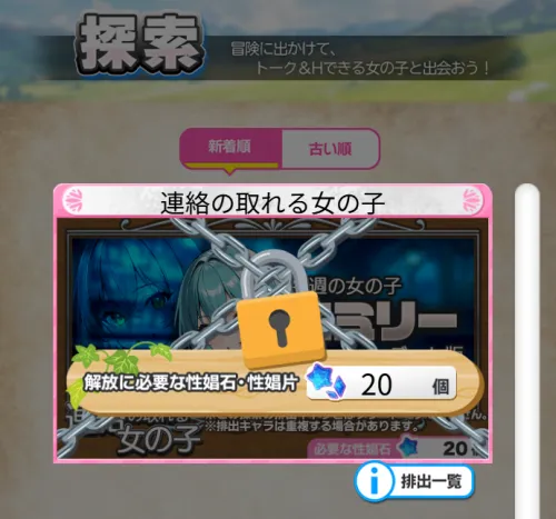 プレイヤーはまず「探索(ガチャ)」で女の子を見つけます。