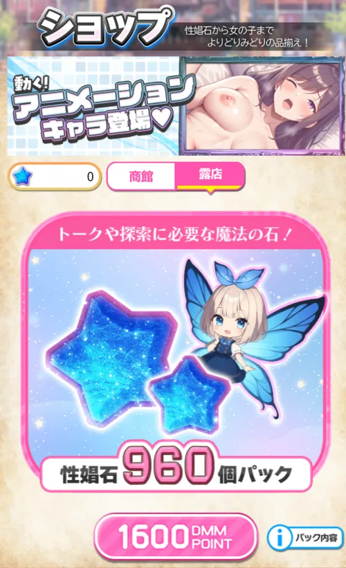 基本的に「性娼石」が課金アイテム、「性娼片」がログインボーナスなどで配られます。