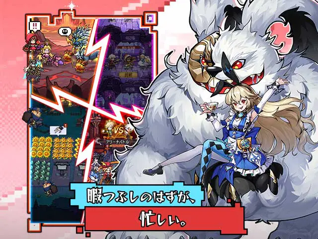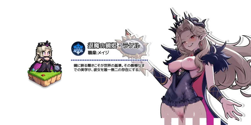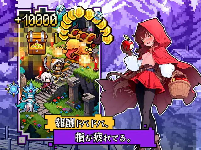 コミカルなドットイラストが目を引く放置系RPGで、闇落ちおとぎ話がモチーフ。