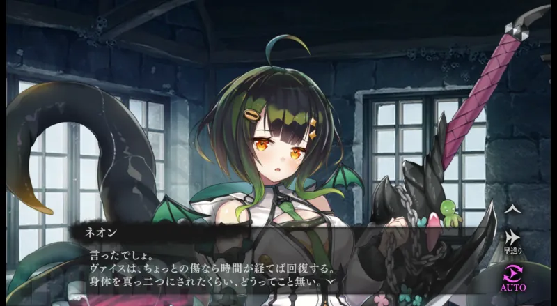 自らを上位存在と称するヴァイスはほぼ不死身の存在で、体を真っ二つにされる程度のちょっとした傷(?)ならすぐ回復します。