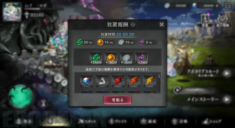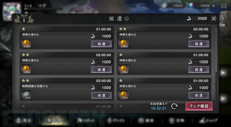時間経過でアイテムを収集する「派遣」システム。