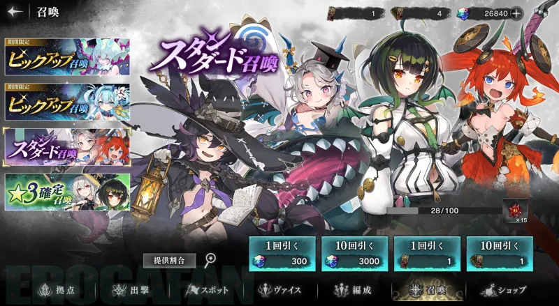 無課金でもガチャチケットがもらえるので、最序盤はそれを使って戦力アップしましょう。