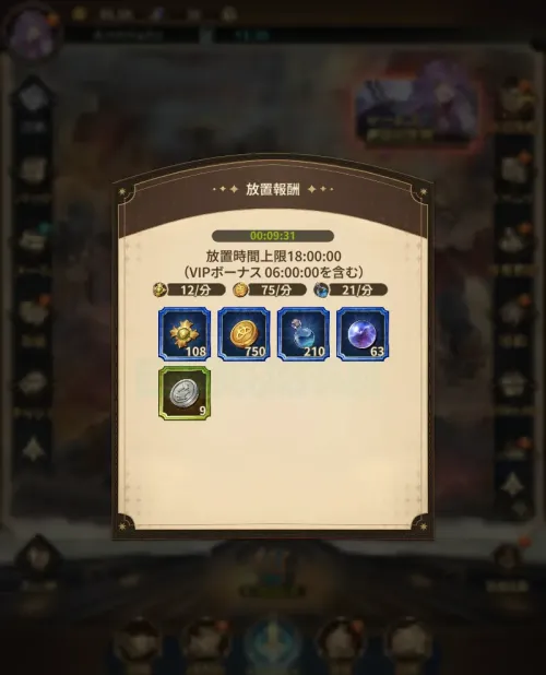 放置系ゲームなので、放置報酬で育成するゲーム。
